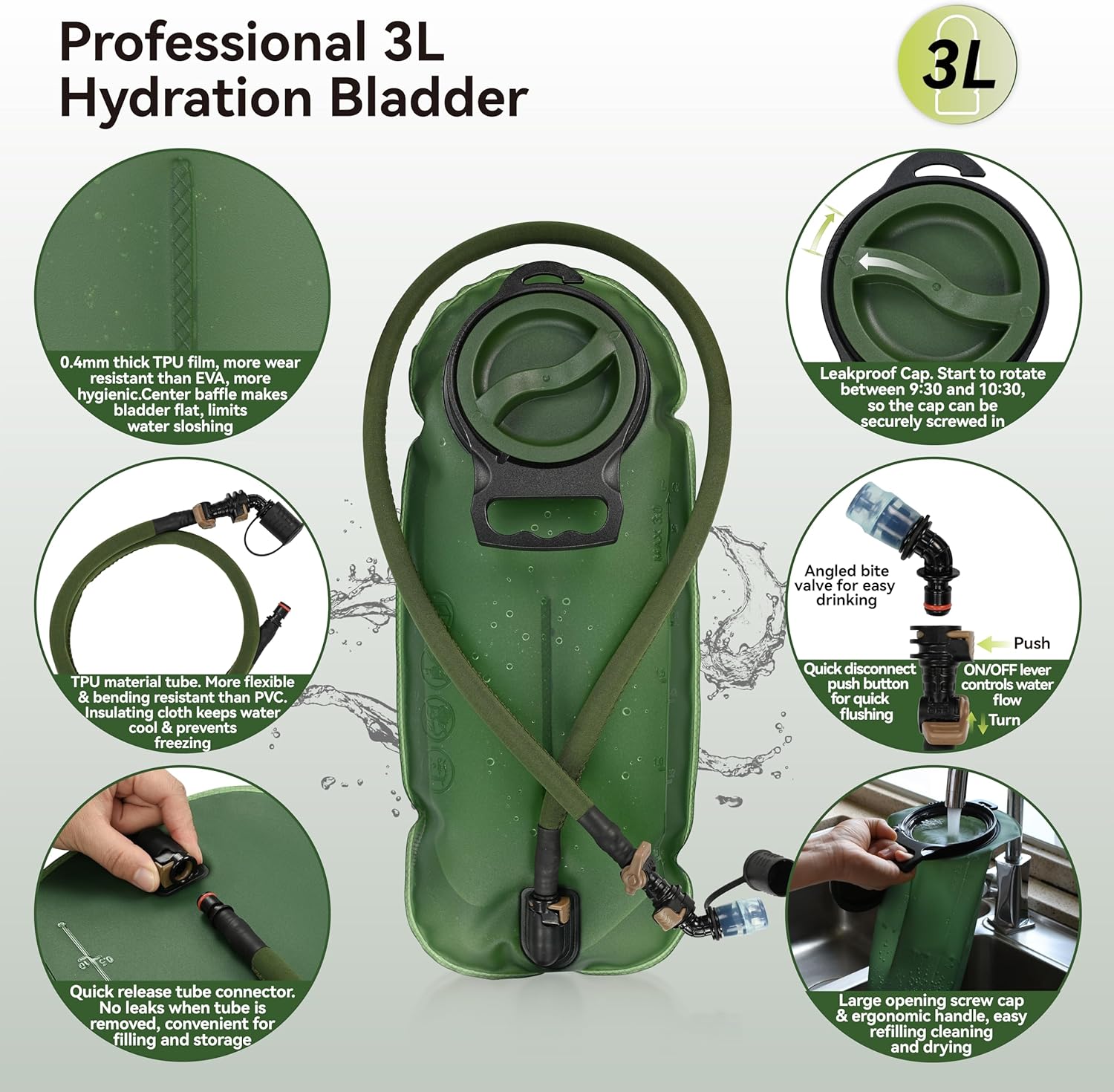 Tactical Molle Hydration Pack Backpack with 3L Water Bladder