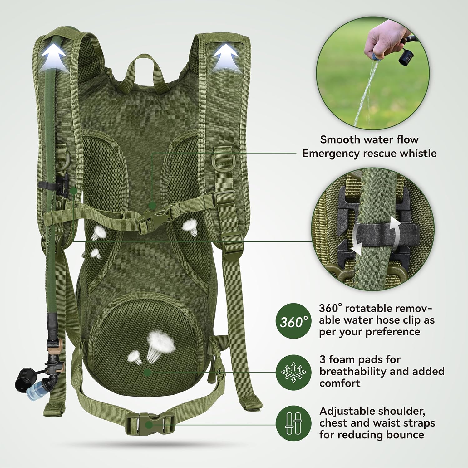 - Versatility: Frees your hands while drinking, this tactical hydration pack is your perfect choice for short trip, camping, bike riding, walking, mountaineering, kayaking, skiing, snowboarding. A decent holiday gift for family and friends who love outdoor sports.