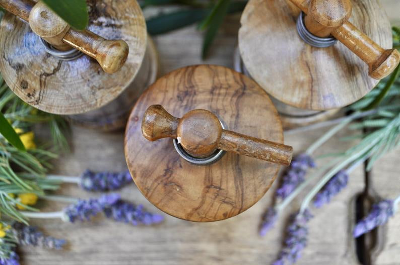 - Reusable and refillable, handmade from sustainable olive wood. Fill it with your favorite seasonings, dried chilis, or herb blends. A perfect gift for any family, chef, or foodie!