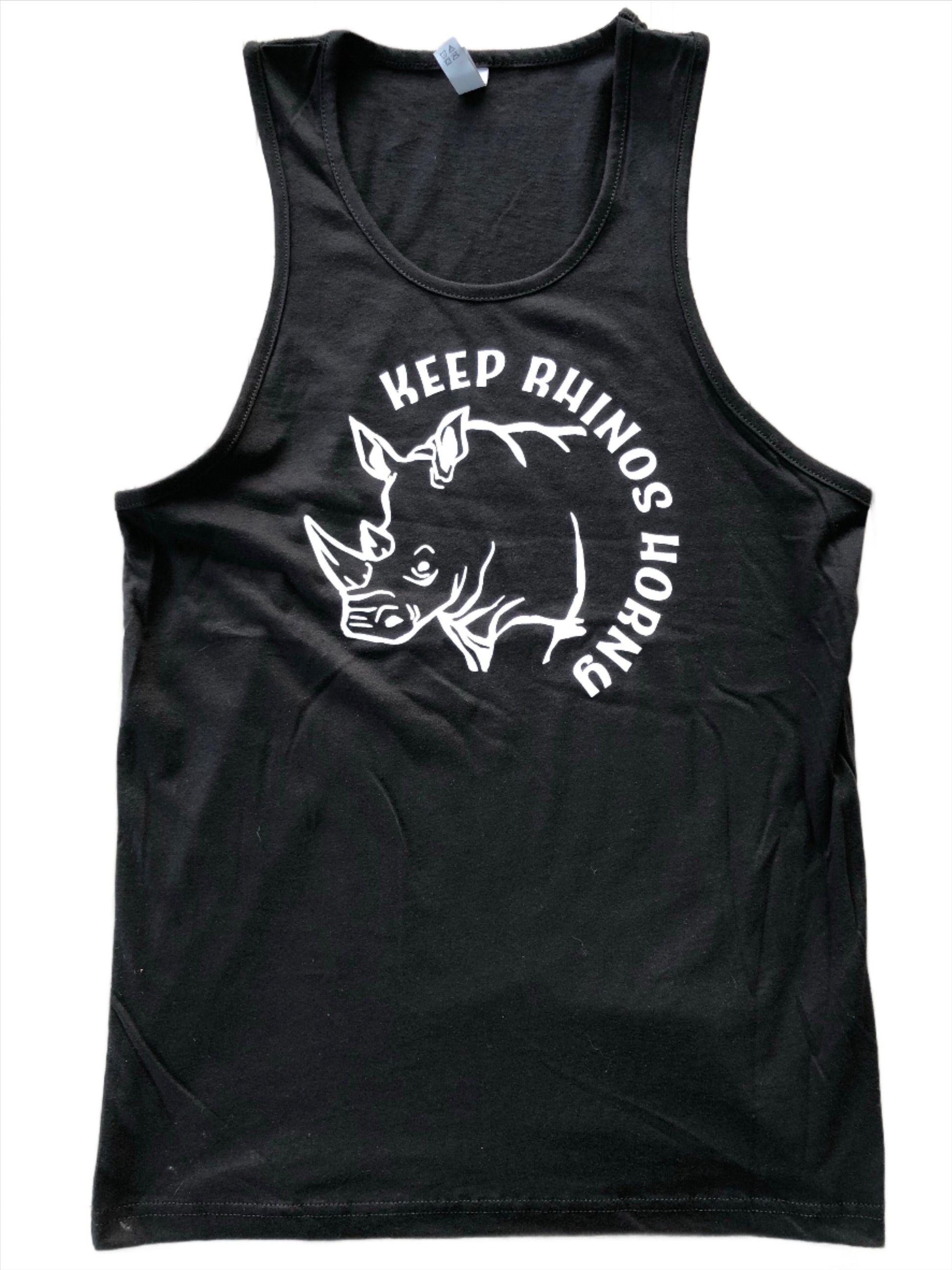 Help Keep Rhinos Horny with the purchase of our unisex tank top. Cotton blend, true to size fit. All proceeds support our frontline wildlife protection and conservation efforts.