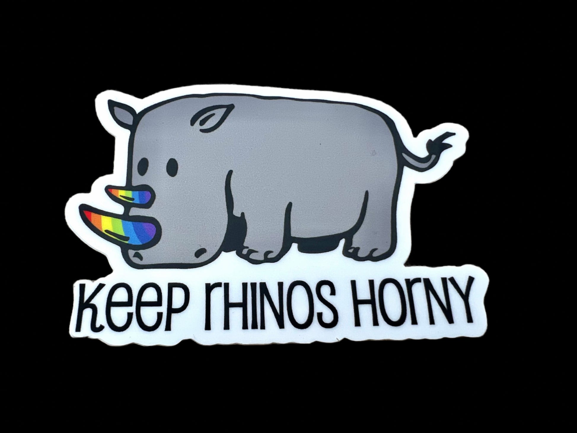 Keep Rhinos Horny - rainbow horns - Vinyl Die Cut Sticker