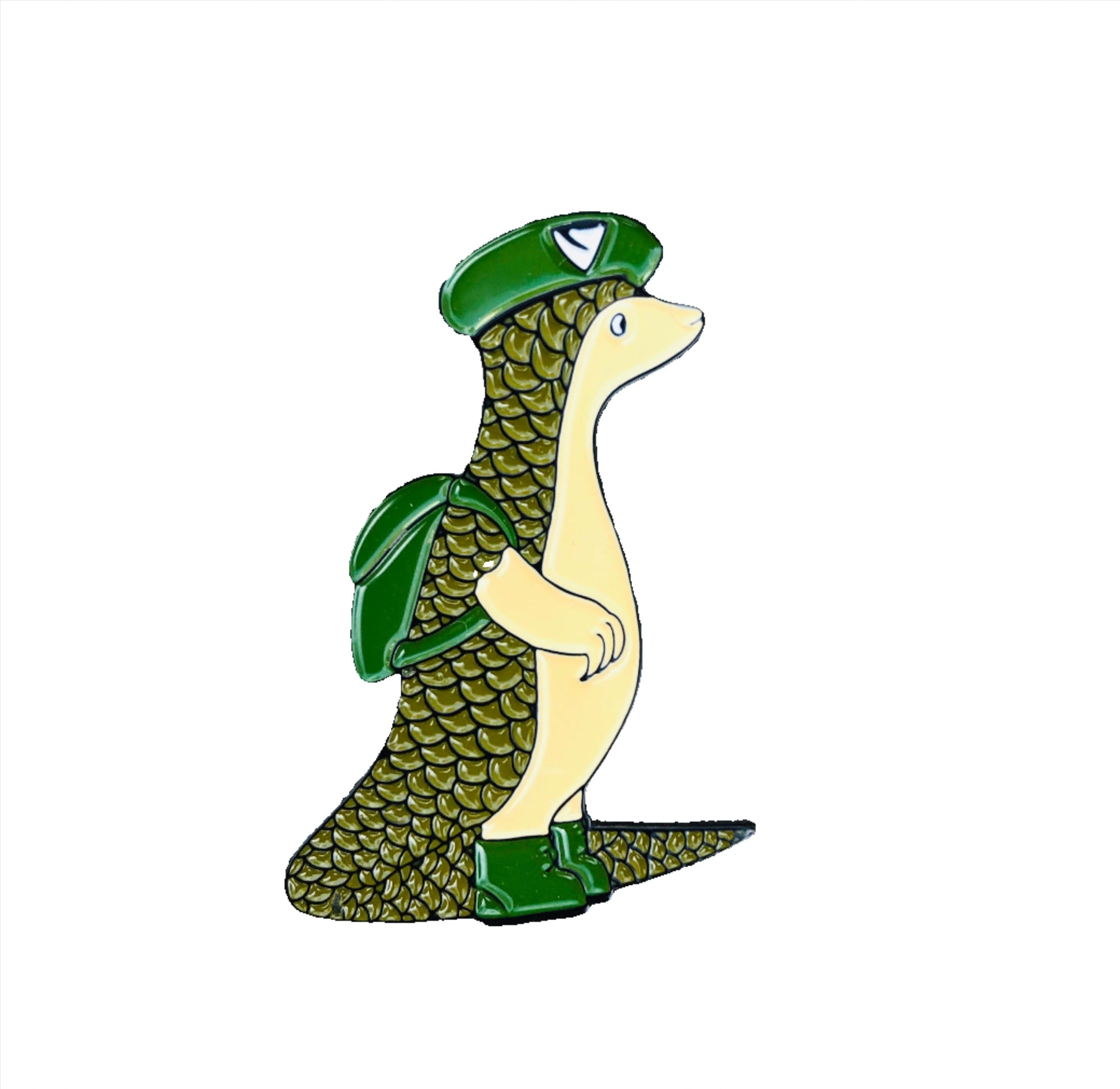 Support pangolin conservation efforts by purchasing our pangolin ranger pin. This pin was made in collaboration with “Pipisin Pangolin.” Pipisin is geared up as a ranger to help protect the 8 species of pangolin.