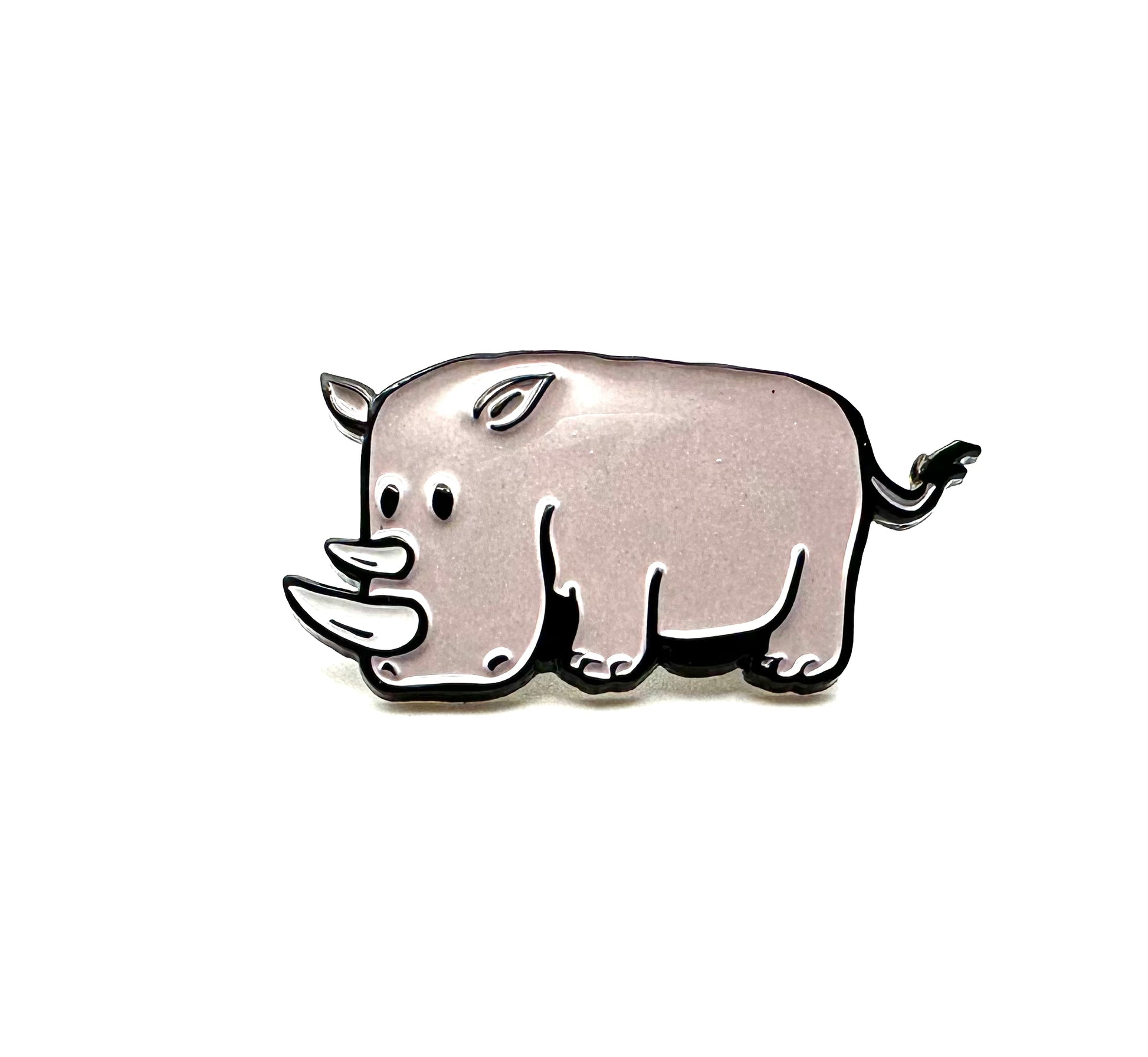 1.75 inch metal rhino pin. 100% of the proceeds go towards our wildlife protection and conservation efforts.