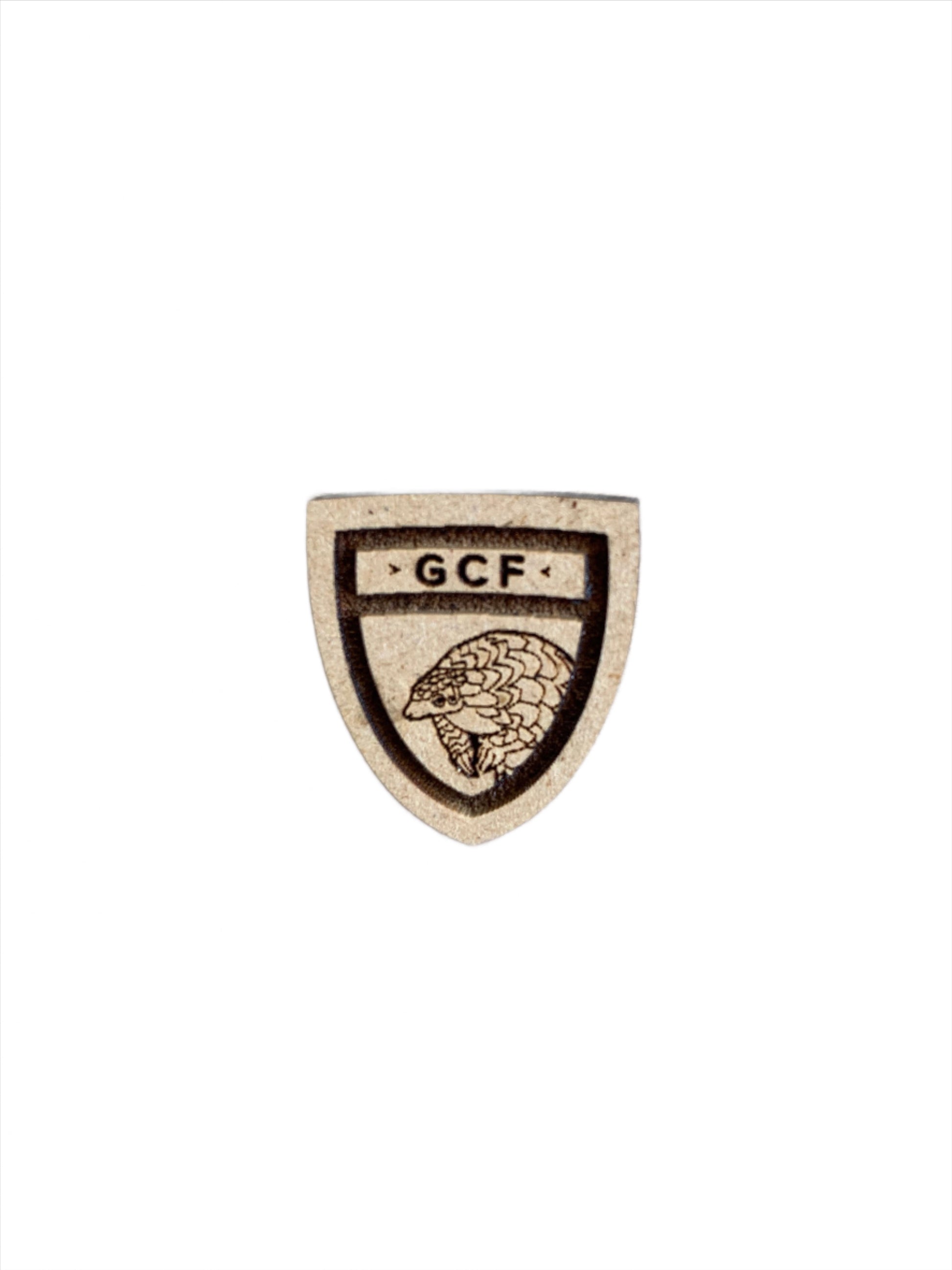 Laser etched wood pins with GCF animal cause-shields. Made in America, 100% of the profits go directly to our frontline wildlife protection and conservation efforts!